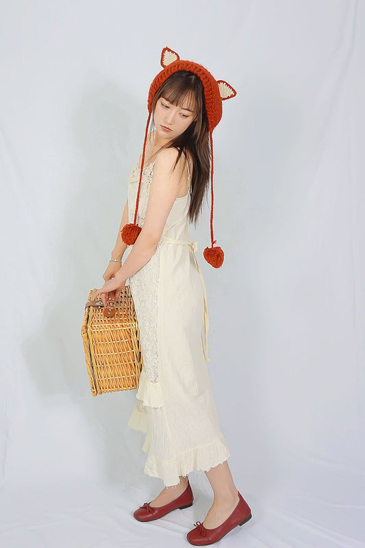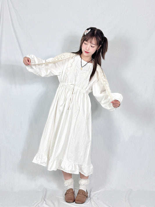 Vintage-Inspired Ruffle Midi Dress- White colour (lace crochet shawl is included)